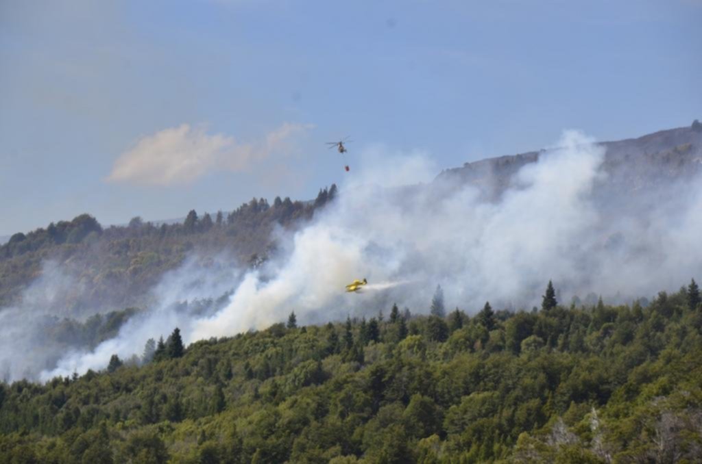 El fuego es tan grande, que está consumiendo parte del del Parque Nacional Nahuel Huapi. A su vez el viento complica el trabajo de los bomberos