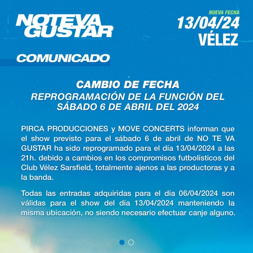 La banda debió cambiar la fecha de su show por la celebración de los 30 años debido a compromisos futbolísitcos de Vélez Sarsfield.