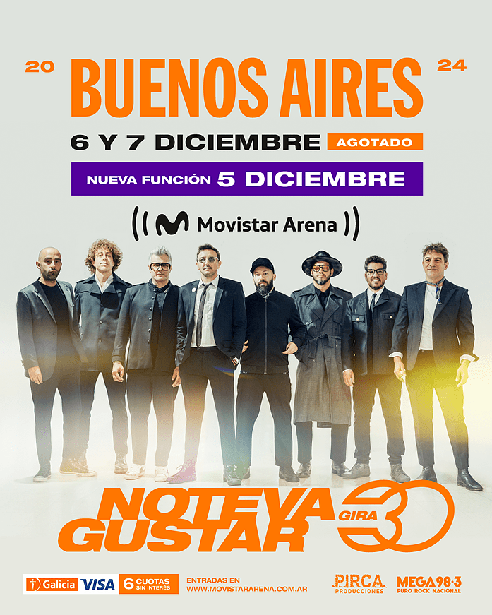 Tras agotar las entradas para sus shows del 6 y 7 de diciembre en el Movistar Arena de Buenos Aires, NTVG anunció una nueva función para el jueves 5 de diciembre, con tickets disponibles desde hoy a las 10 am en Movistar Arena.