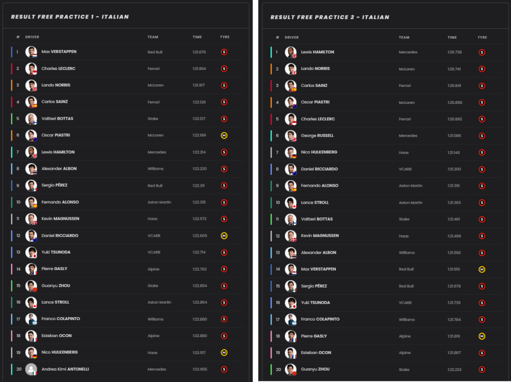 Finalizaron las dos primeras sesiones de prácticas libres y ambas tandas el piloto de Pilar se ubicó P17. El veloz circuito de Monza, Italia es ideal para su debut. Una pista en donde mas del 70% de la vuelta se hace con el acelerador a fondo.