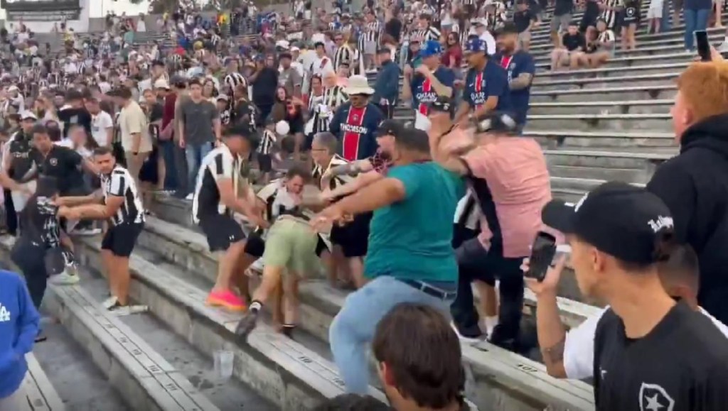 Un grupo de hinchas de Botafogo y PSG se agarraron a las piñas en la tribuna.